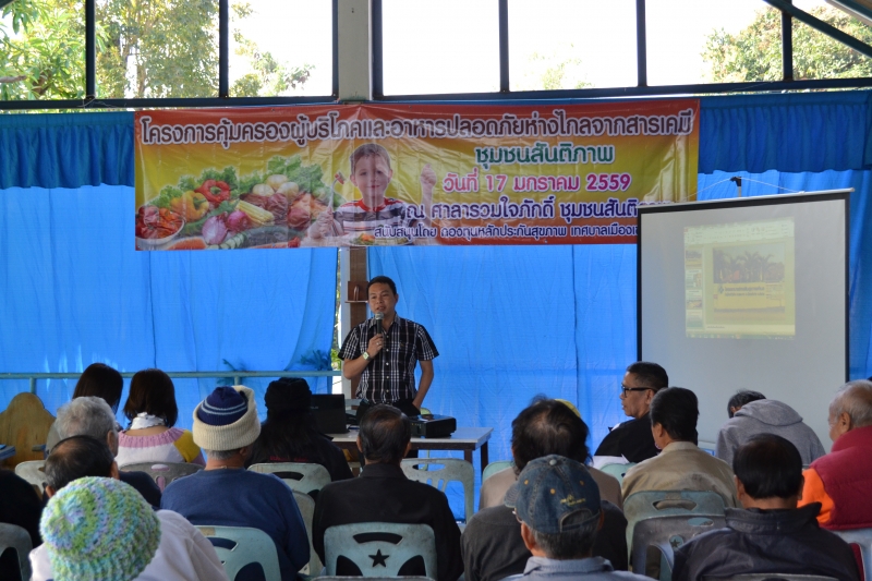 นายไพฑูรย์ โพธิ์ทอง นายกเทศมนตรีเมืองเขลางค์นคร ได้มอบหมายให้ นายธาราเงิน จันทร์คำ รองนายกเทศมนตรีเมืองเขลางค์นคร เป็นประธานในการเปิดโครงการคุ้มครองผู้บริโภคและอาหารปลอดภัยห่างไกลจากสารเคมี ชุมชนสันติภาพ ในวันที่ 17 มกราคม 2559 ณ.ศาลาเอนกประสงค์ชุมชนสันติภาพ