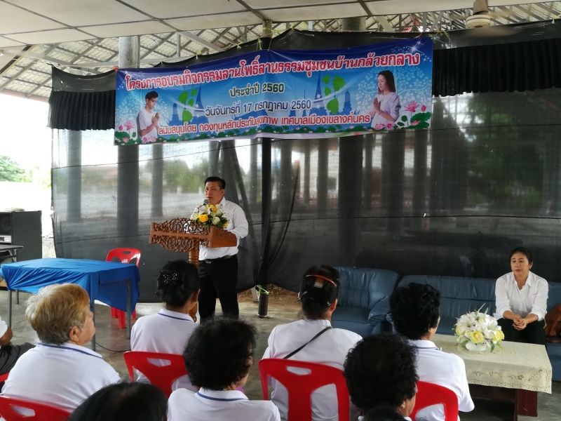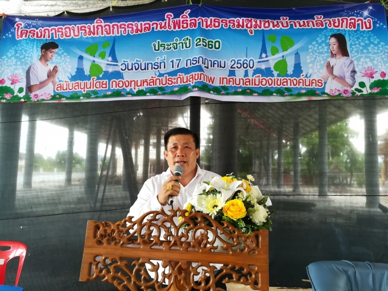นายไพฑูรย์ โพธิ์ทอง นายกเทศมนตรีเมืองเขลางค์นคร ได้มอบหมายให้ นายธวัชชัย สุปินะ สมาชิกสภาเทศบาล เป็นประะานในการเปิดโครงการลานธรรมชุมชนกล้วยกลางร่วมสร้างพฤติกรรมสุขภาพดีวิถีไทย ในวันที่ 17 กรกฏาคม 2560 ณ.วัดกล้วยกลาง
