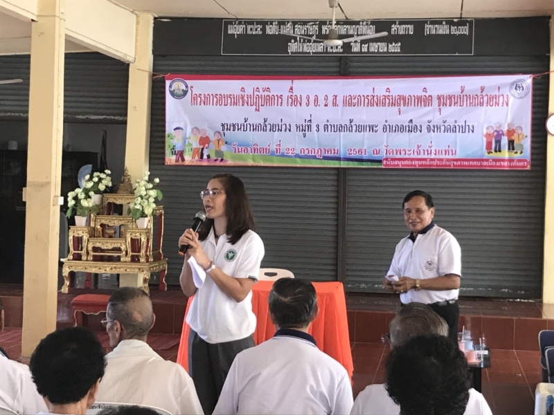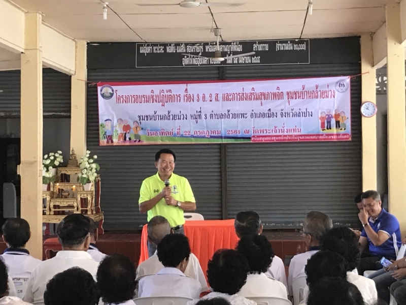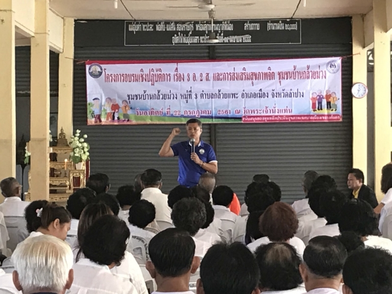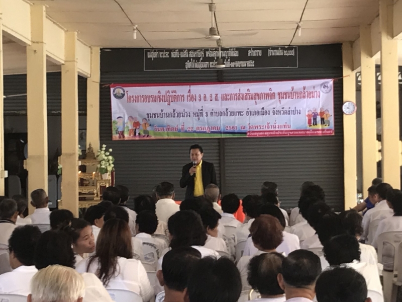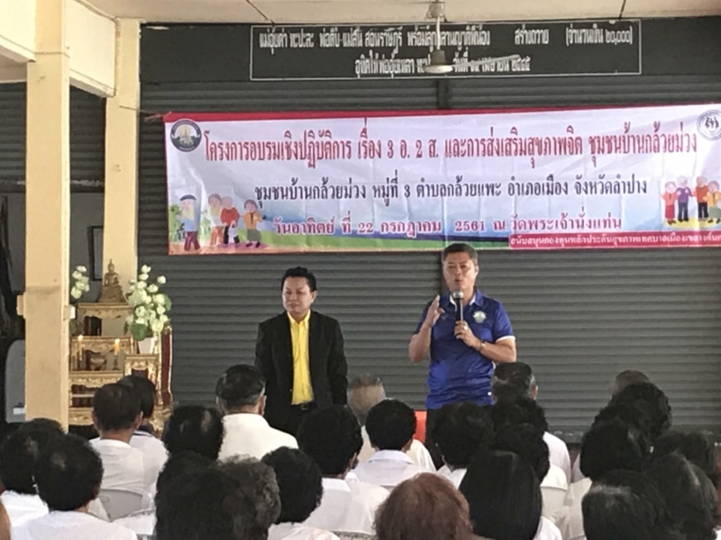 นายไพฑูรย์ โพธิ์ทอง นายกเทศมนตรีเมืองเขลางค์นคร ได้เป็นประธานในการเปิดโครงการ อบรมเชิงปฏิบัติการเรื่อง 3อ 2ส และส่งเสริมสุขภาพจิตชุมชนกล้วยม่วง ในวันที่ 22 กรกฏาคม 2561 ณ.ศาลาเอนกประสงค์วัดพระเจ้านั่งแท่น